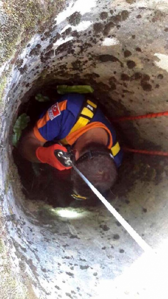 İşçiler durumu AFAD'a bildirdi. Gelen ekipten bir görevli oksijen maskesi takıp halat yardımıyla boş su kuyusuna girdi. Yaklaşık 20 metre derinliğindeki kuyuda bulunan kedi görevli tarafından çıkarıldı.