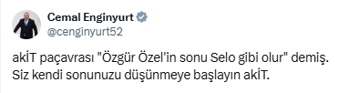 Enginyurt, “akİT paçavrası "Özgür Özel'in sonu Selo gibi olur" demiş. Siz kendi sonunuzu düşünmeye başlayın akİT” diye yazdı.