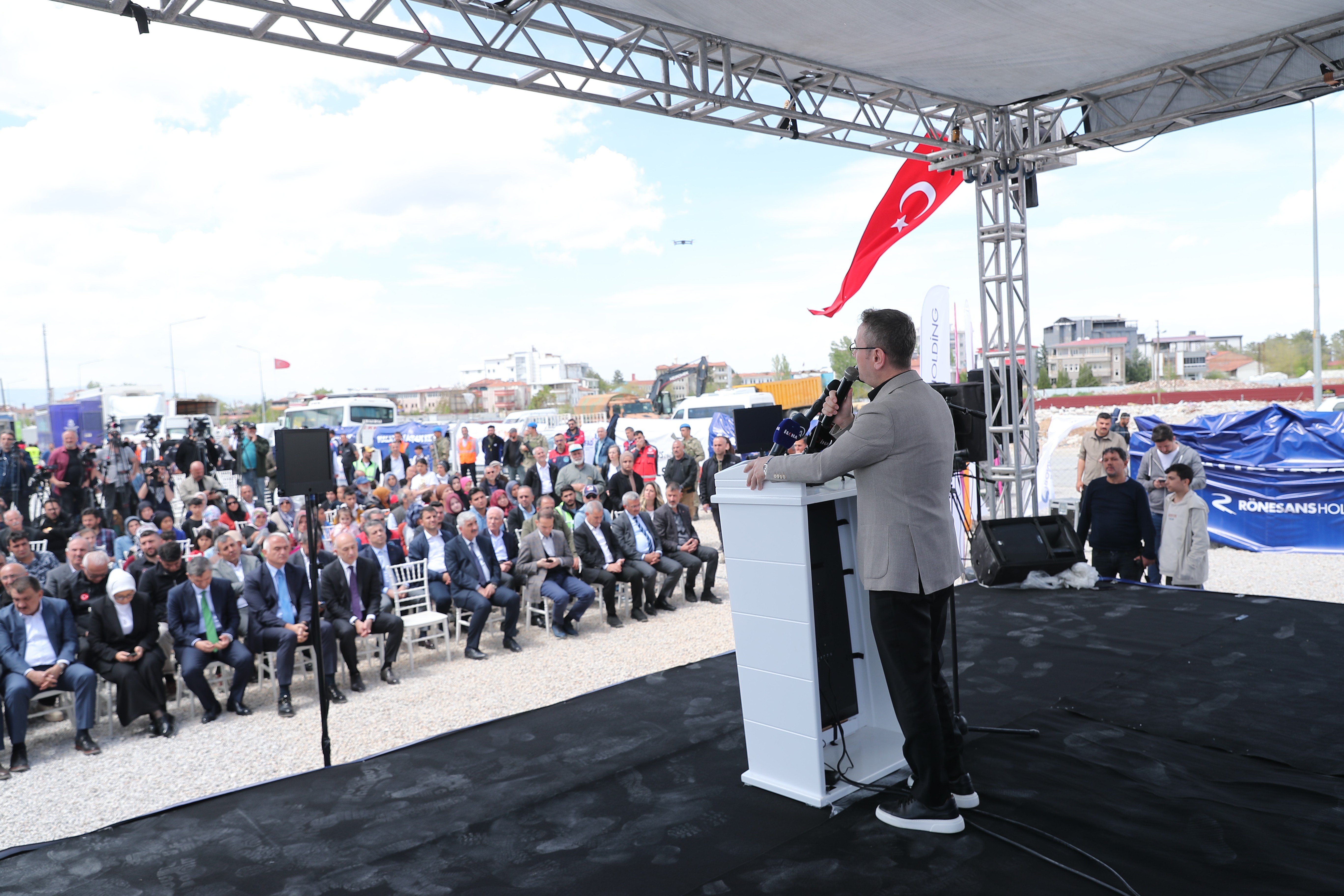Rönesans Holding Başkanı Erman Ilıcak da 6 Mayıs’a kadar çalışmaları tamamlayarak tüm konteynerlerin teslim edileceğini söyledi. Yaraları sarmak için el ele verdiklerini belirten Ilıcak, “İmece usulü işle bir araya geldik. Tek derdimiz vardı; yaraları sarmak ve bir nebze destek olmak. Gidenleri geri getirmek mümkün değil ama hep birlikte çalışarak Malatya’yı yeniden inşa edeceğiz. Konteyner kentlerin inşasında her zaman destek veren Başakşehir Belediye Başkanı Yasin Kartoğlu’na da teşekkür ediyorum.” şeklinde konuştu.