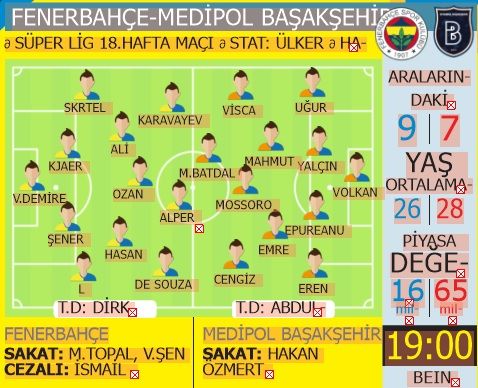 Sezona şampiyonluk parolasıyla başlayan Fenerbahçe’nin bugün alacağı sonuç tüm sezonun sonucunu tayin edebilir. Sahasında Başakşehir’i konuk edecek sarı-lacivertliler, 7 puan gerisinde oldukları lidere puan kaptırması halinde zirve yarışından tamamen kopabilir. Teknik Direktör Dirk Advocaat, oyuncularıyla yaptığı toplantıda, “Sezonun en zor sınavı bizi bekliyor. Kazanmak bizim için dev bir adım olacak. Diğer ihtimalleri ise düşünmek dahi istemiyorum” diyerek karşılaşmanın önemine vurgu yaptı. “Ligin en etkili ekiplerinden biriyle karşılaşacağız” diyen Hollandalı, “Bizi zafere götürecek olan bütünlüğümüz olacaktır. Takım olan kazanacak” ifadesiyle oyuncularını motive etti.