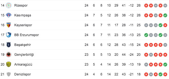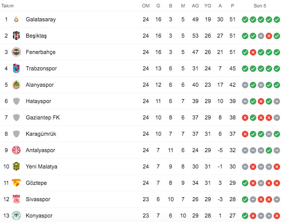 Süper Lig puan durumu