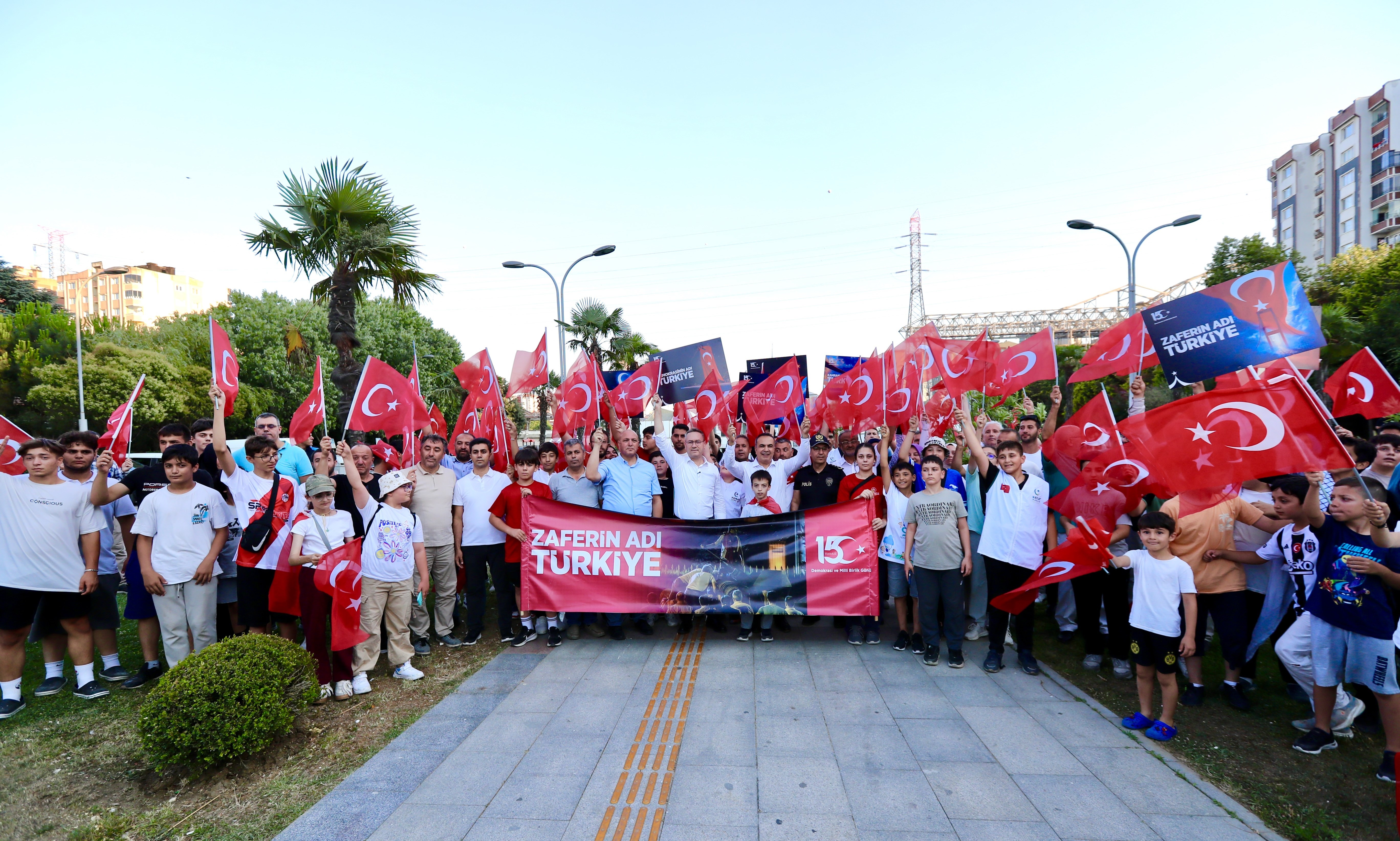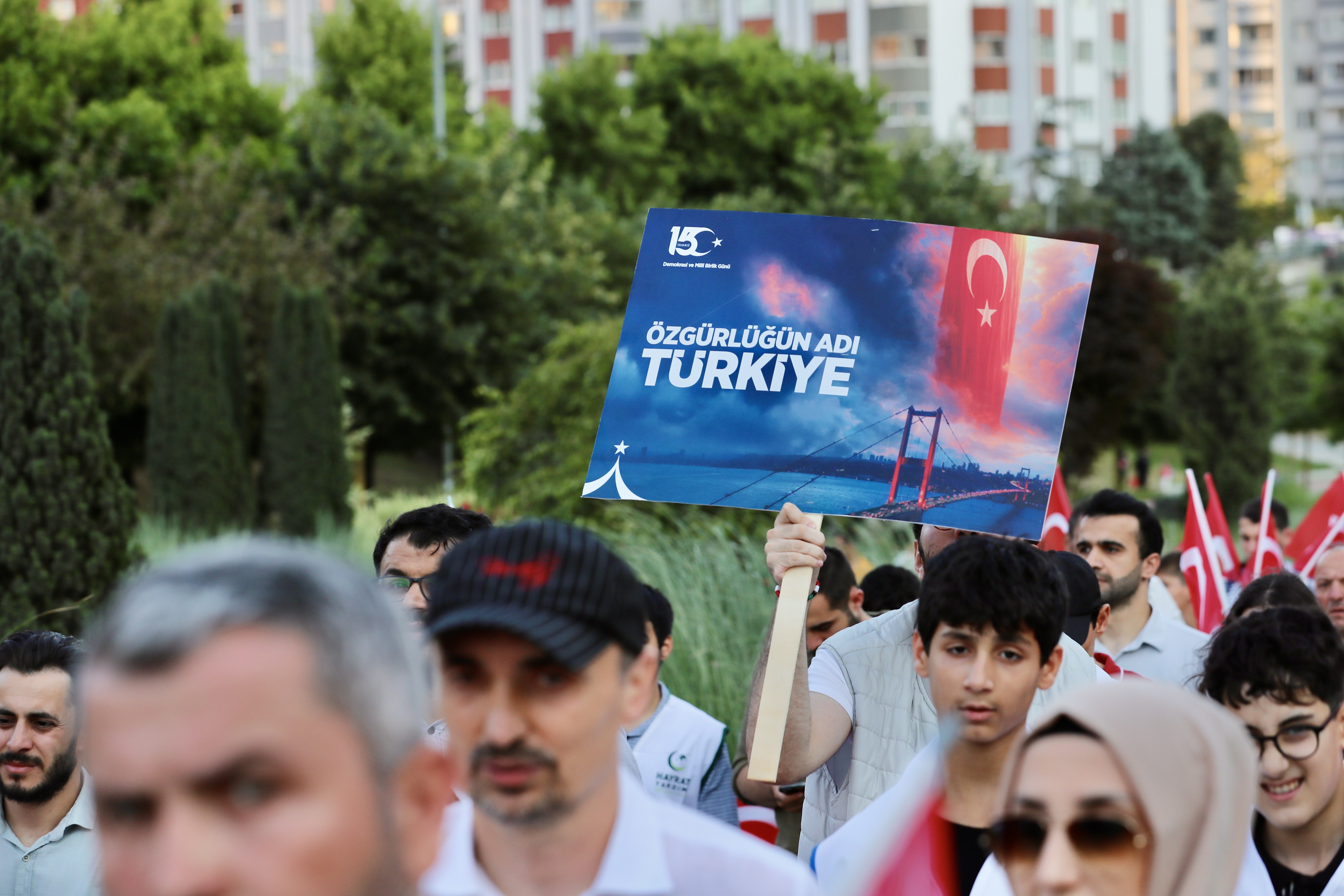 Başakşehir’de, 15 Temmuz hain darbe girişiminin 9’uncu yıl dönümünde yüzlerce vatandaş bir araya gelerek kahraman şehitlerimizi andı. Anma törenine katılan Başakşehir Belediye Başkanı Yasin Kartoğlu, “15 Temmuz’u lütfen unutmayalım, unutturmayalım ve çocuklarımıza da hatırlatalım.” dedi.