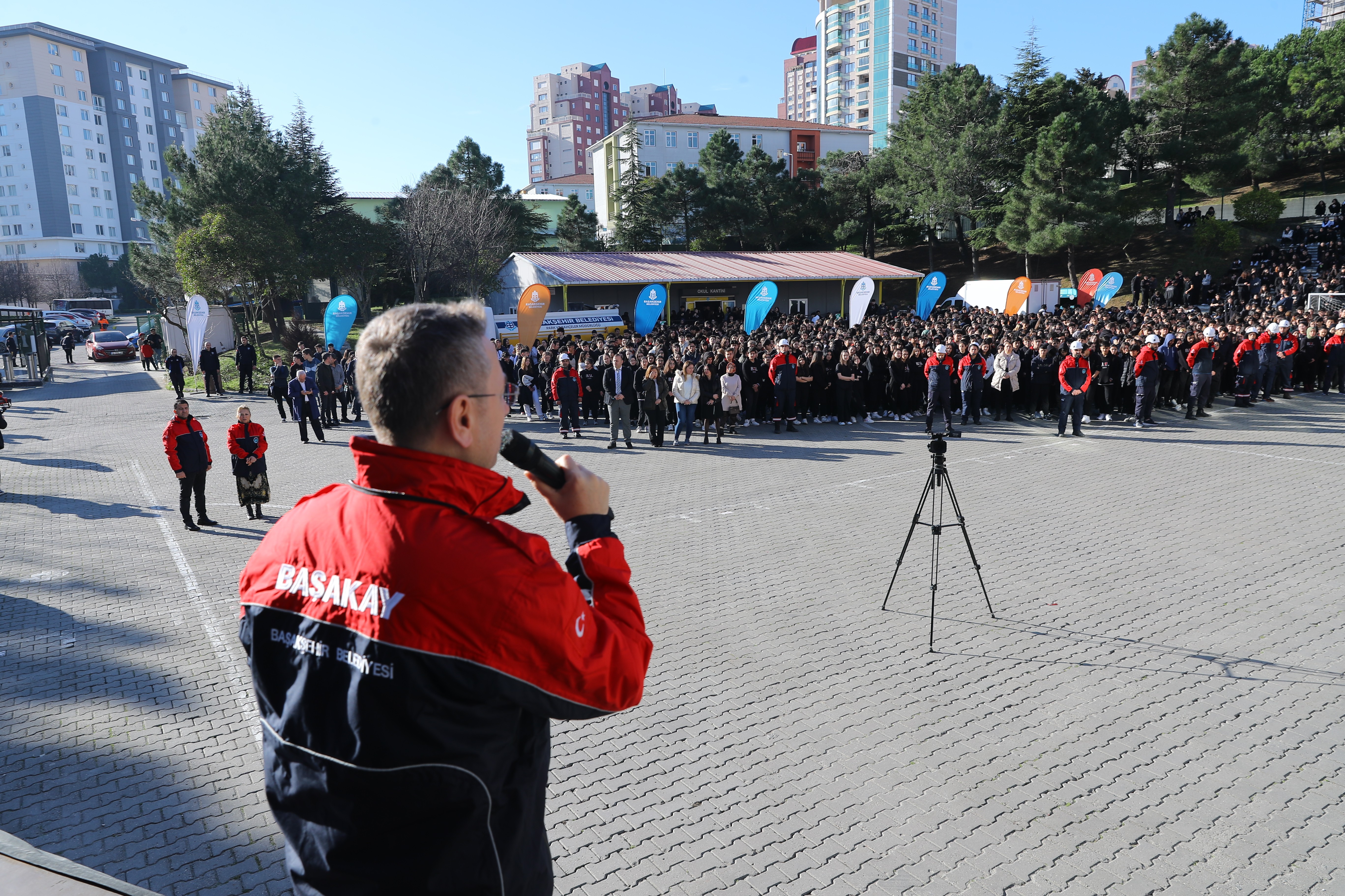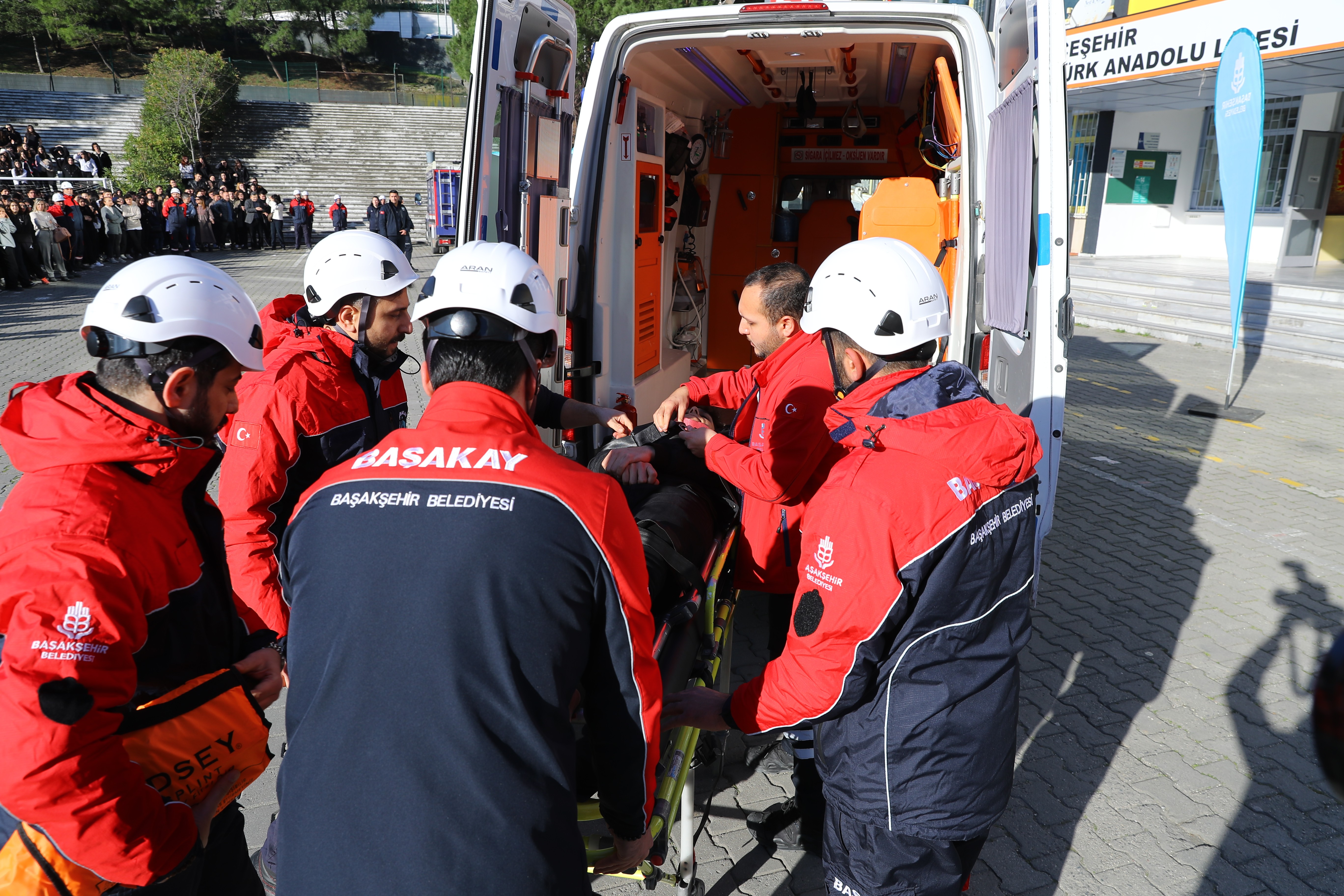 Başakşehir Belediyesi, deprem bilincini artırmak adına tatbikat ve eğitimlerine aralıksız devam ediyor. Başakşehir Arama Kurtarma Afet Yönetimi (BAŞAKAY) ekipleri, 6 Şubat depremlerinin birinci yıl dönümünde öğrencilerin katılımıyla deprem tatbikatı gerçekleştirdi. Bahçeşehir’deki Atatürk Anadolu Lisesi’nde düzenlenen tatbikata Başakşehir Belediye Başkanı Yasin Kartoğlu da katıldı.