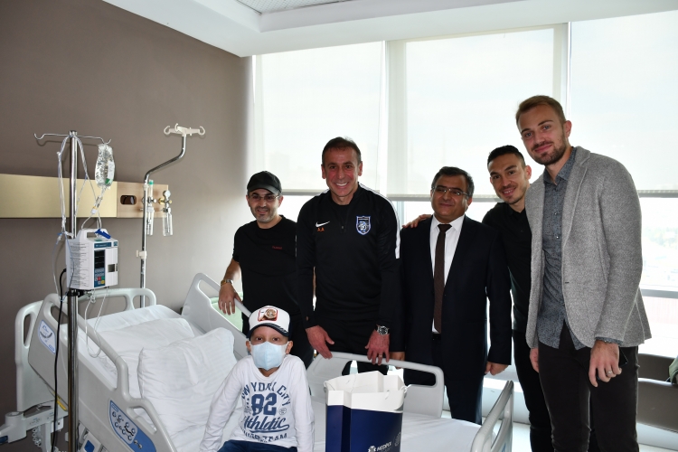 Medipol Mega Üniversite Hastanesi’nde lösemi, karaciğer ve böbrek yetmezliği tedavisi gören minikler, Medipol Başakşehir Teknik Direktörü Abdullah Avcı ve oyuncuları ziyaret etti.