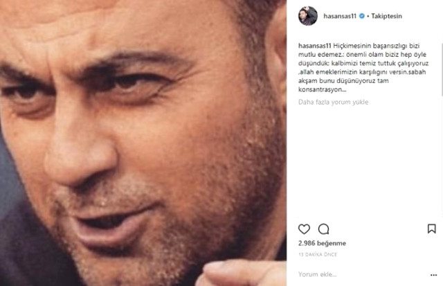 Başakşehir'in Sivasspor'a 1-1 berabere kaldığı maçın ardından Galatasaray Teknik Direktörü Fatih Terim'in yardımcılığını yapan Hasan Şaş, sosyal medya hesabından bir mesaj yayınladı.