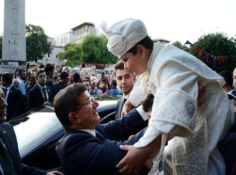 Sergi çıkışında Davutoğlu'na, Sultanahmet Meydanı'nda iftar vaktini bekleyen vatandaşlar sevgi gösterisinde bulundu. Vatandaşlara "hayırlı ramazanlar" temennisinde bulunan Davutoğlu, sünnet kıyafetli 7 yaşındaki Talha Kesim adlı çocukla da bir süre sohbet etti.