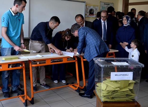Eşi Sare Davutoğlu ile birlikte olan Başbakan Ahmet Davutoğlu Konya'da oyunu kullandı.