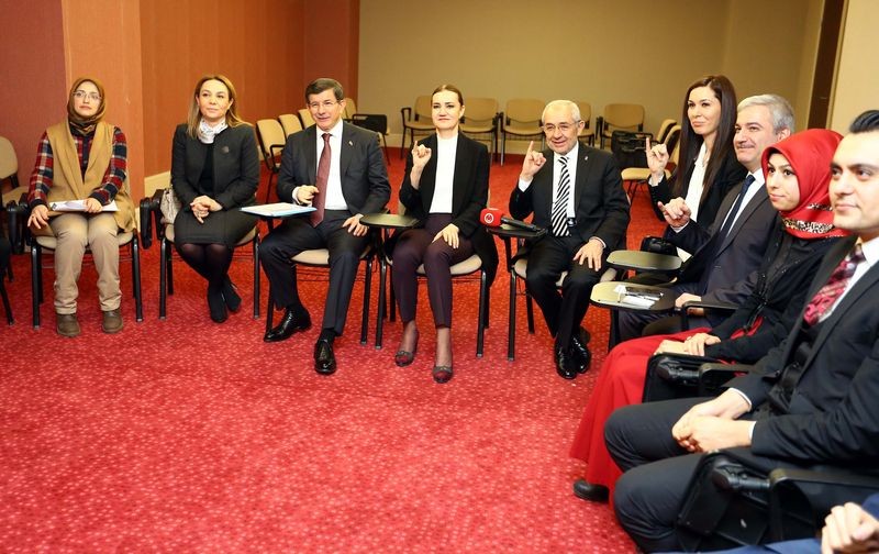 Davutoğlu, AK Parti Genel Merkezi'ndeki MKYK toplantısı öncesinde, partisinin Sosyal İşler Başkanlığı tarafından organize edilen ve işitme engellilerin kullandığı işaret dili eğitiminin verildiği derse iştirak etti.