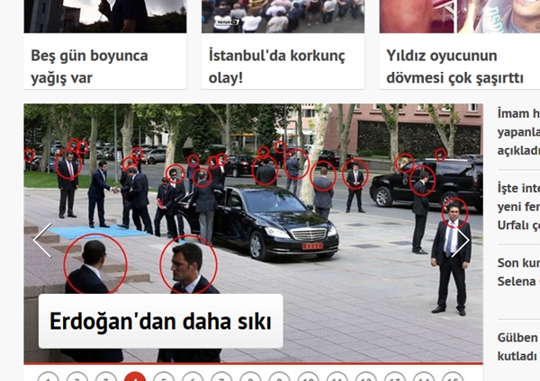 Doğan Medya bünyesinde bulunan ve İsrail'le aynı yıl kurulan Hürriyet gazetesi, geçtiğimiz günlerde Cumhurbaşkanı Recep Tayyip Erdoğan ve Başbakan Ahmet Davutoğlu'nun bir arada olduğu fotoğraf karesinde yer alan ve etrafında korumaların bulundupu fotoğrafı kullanarak haber yapmıştı.