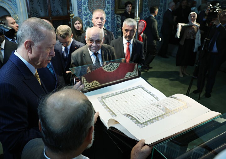 Cumhurbaşkanı Recep Tayyip Erdoğan, Hırka-i Saadet Dairesi'ndeki Hırka-i Saadet'i ziyaret etti, Destimal törenine katıldı.
