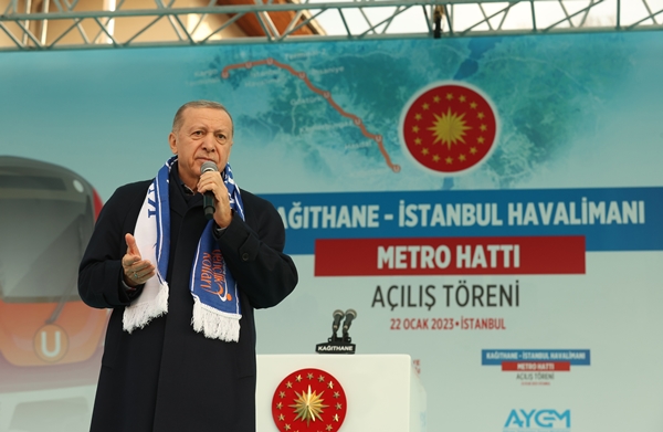 Erdoğan, açılışı yapılan metro hattıyla havalimanına hızlı ve kolay ulaşım ihtiyacının karşılanacağını kaydederek, "Halen inşası süren metro hatlarını da devreye aldığımızda İstanbul'un raylı sistemlerle ulaşılamayan hiçbir köşesi kalmıyor. Böylece İstanbul büyüklüğündeki bir dünya şehrinin sürdürülebilirliği için hayati öneme sahip bir eksiğini daha gidermiş oluyoruz. Dünyanın turizm, ulaşım, finans, kültür, sanat, spor, eğitim, sağlık merkezi olma yolunda hızla ilerleyen İstanbul için aşkla çalışmaya devam edeceğiz. İnşallah Kanal İstanbul Projesi ile şehrimize yeni bir soluk borusu daha açarak, hem boğazın yükünü hafifletecek hem İstanbul'un marka değerini yükselteceğiz." ifadesini kullandı.