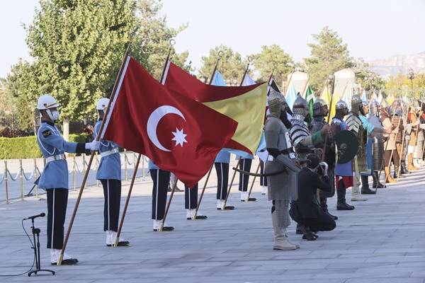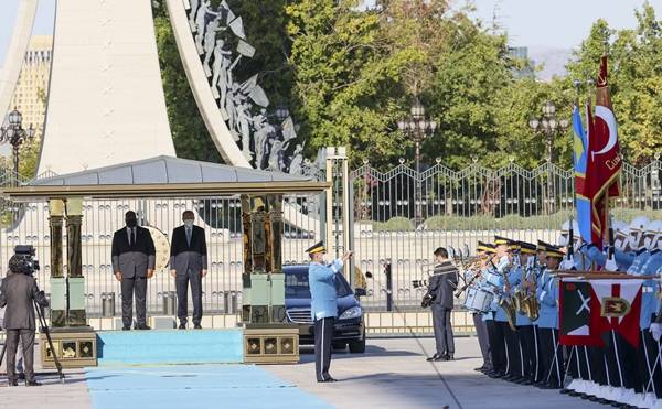 Tshisekedi, Muhafız Alayı Tören Kıtası'nı Türkçe, "Merhaba asker" diyerek selamladı. Törende, tarihte kurulan 16 Türk devletini temsil eden bayraklar ve askerler de yer aldı.