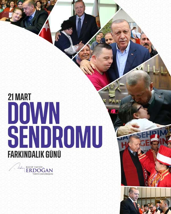 Cumhurbaşkanı Recep Tayyip Erdoğan, 21 Mart Down Sendromu Farkındalık Günü dolayısıyla bir mesaj yayınladı.