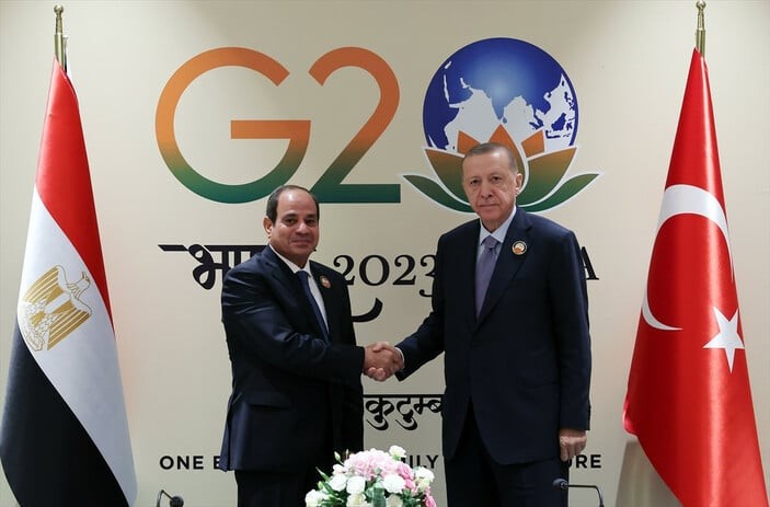 Cumhurbaşkanı Recep Tayyip Erdoğan, 18’inci G20 Liderler Zirvesi dolayısıyla bulunduğu Hindistan’ın başkenti Yeni Delhi’de, Zirve’ye özel davetli olarak katılan Mısır Cumhurbaşkanı Abdulfettah es-Sisi ile görüştü. İki lider görüşmede, Türkiye - Mısır ikili ilişkileri, ticaret hacminin artırılması, enerji alanındaki yeni iş birlikleri ile bölgesel ve küresel meseleleri ele aldı. Cumhurbaşkanı Erdoğan, karşılıklı büyükelçi atamalarıyla ilişkilerin yeni bir döneme girdiğine işaret ederek, ikili münasebetlerin hak ettiği seviyeye en kısa zamanda ulaşacağına olan inancını dile getirdi.
