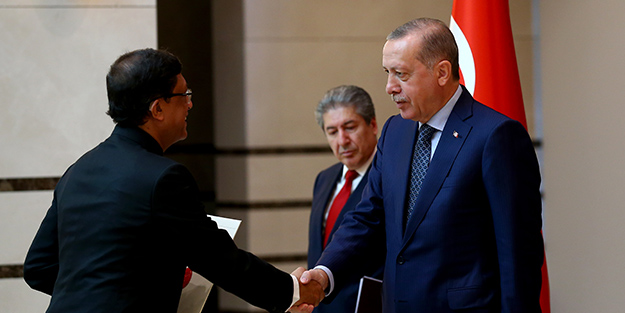 Cumhurbaşkanı Erdoğan’ın kabul törenine aileleri ile birlikte katılan büyükelçiler Erdoğan'a güven mektubu sundu.