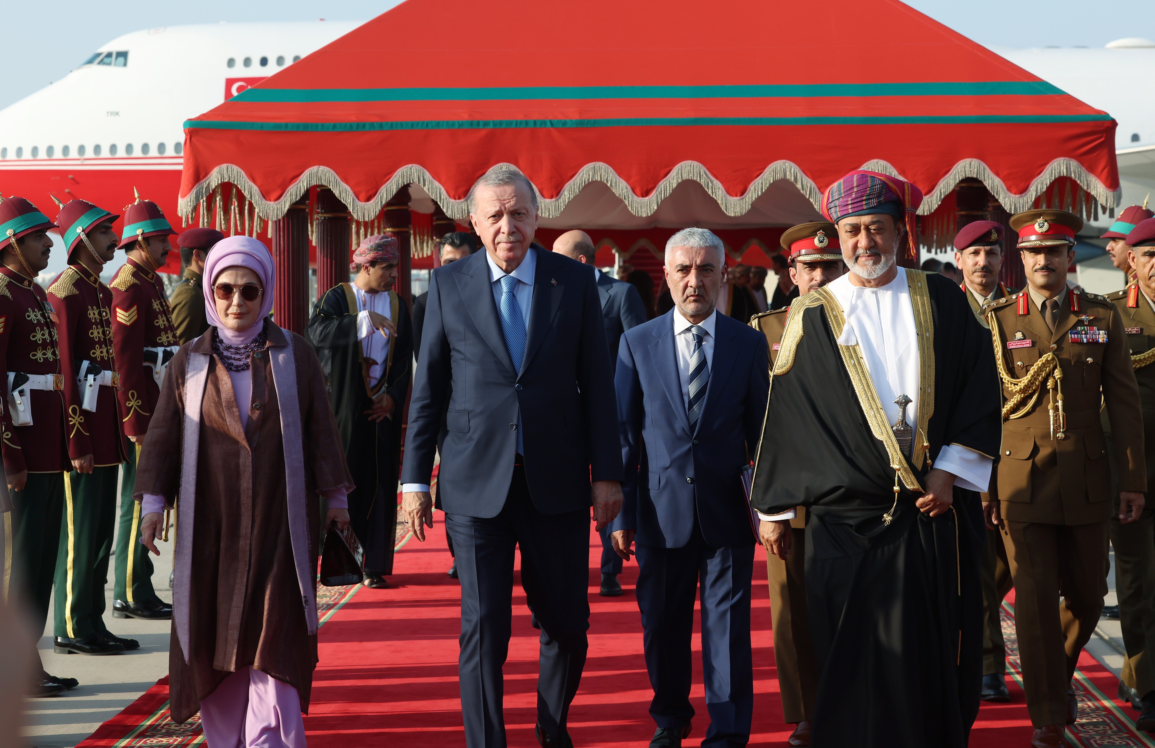 Cumhurbaşkanı Erdoğan, Körfez turunun son ülkesi Umman'ın başkenti Maskat'ta, Umman Sultanı Heysem bin Tarık tarafından resmi törenle karşılandı. Umman Sultanı Heysem bin Tarık, Erdoğan'ın onuruna akşam yemeği verdi.