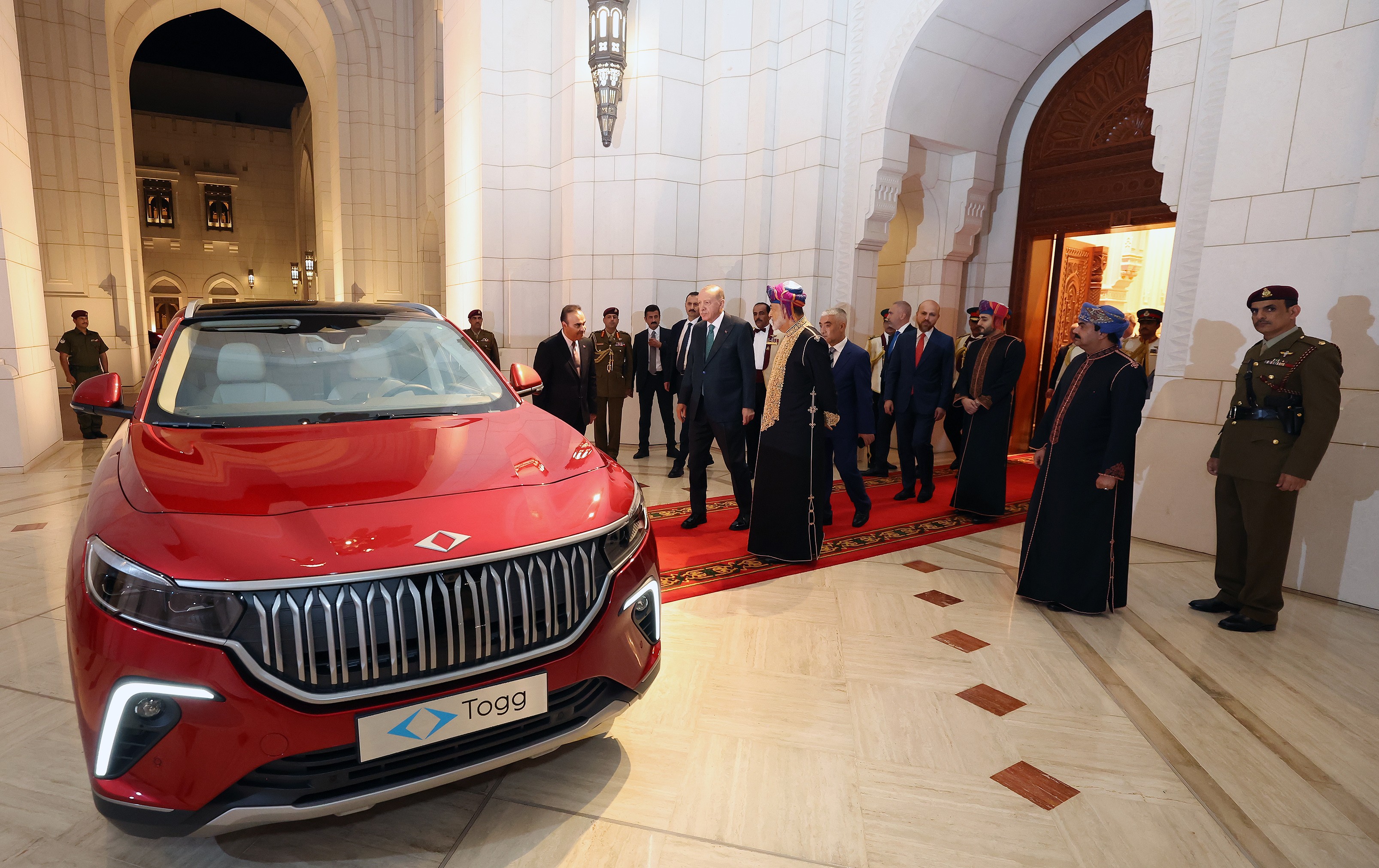 Erdoğan, görüşmenin ardından Heysem bin Tarık'a, kırmızı renkte Togg hediye etti.
