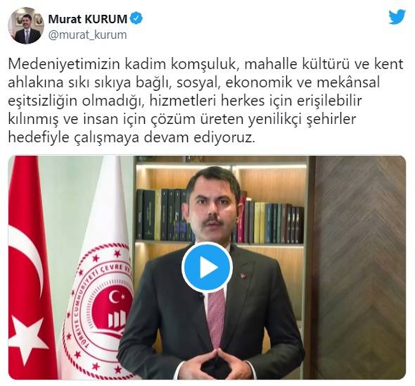 Çevre ve Şehircilik Bakanı Murat Kurum, Twitter hesabından yaptığı videolu açıklamasında, bakanlık olarak tarihi bir adım attıklarını söyledi.