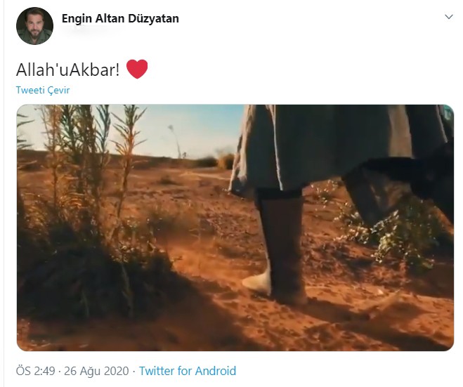 Sosyal medyayı sarsan Başkan Erdoğan’ın sözleriyle yayınlanan bu video Diriliş Ertuğrul’un Ertuğrul Gazi’si Engin Altan Düzyatan’ın Allah’u Akbar sözleri ile paylaşması büyük ses getirdi.