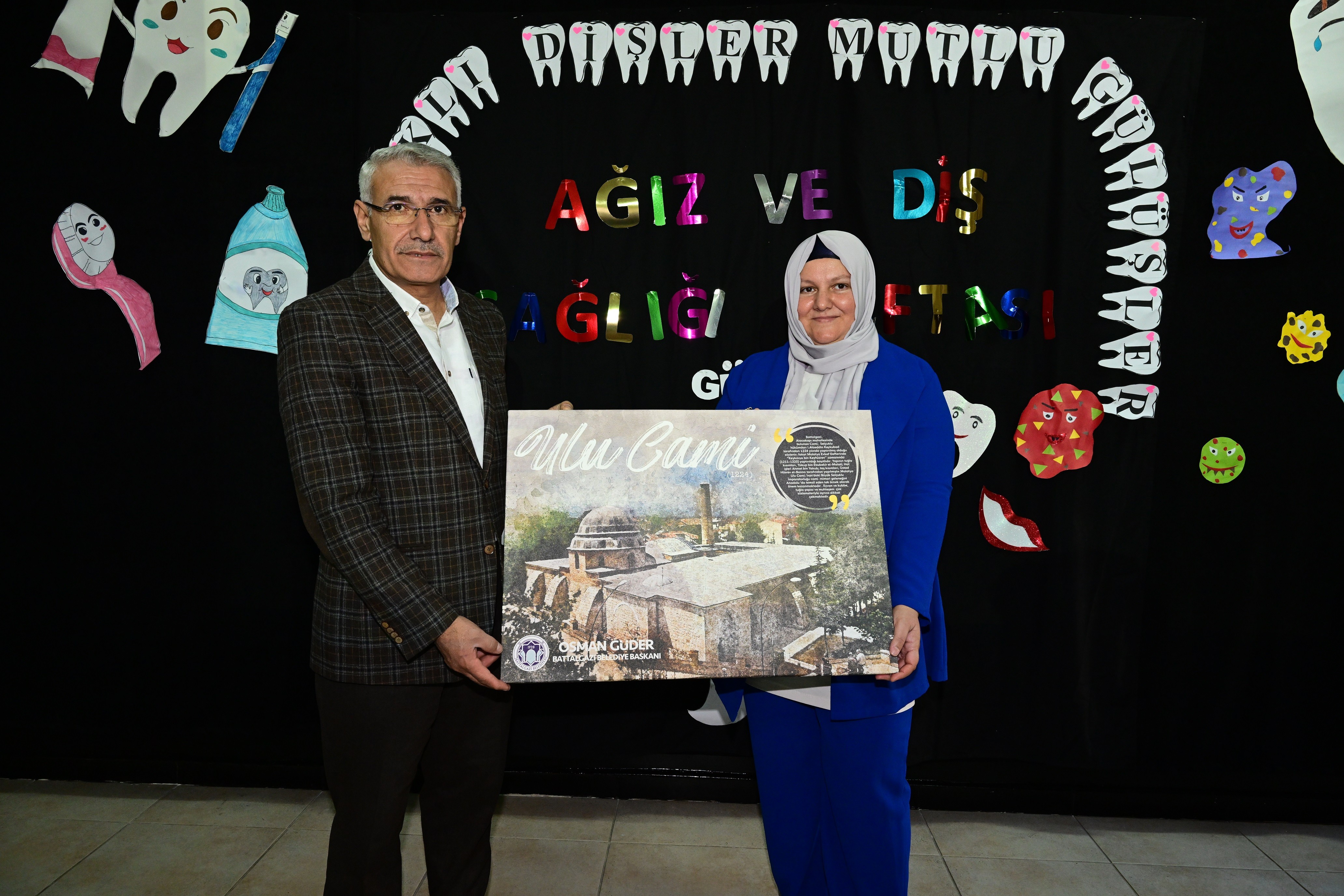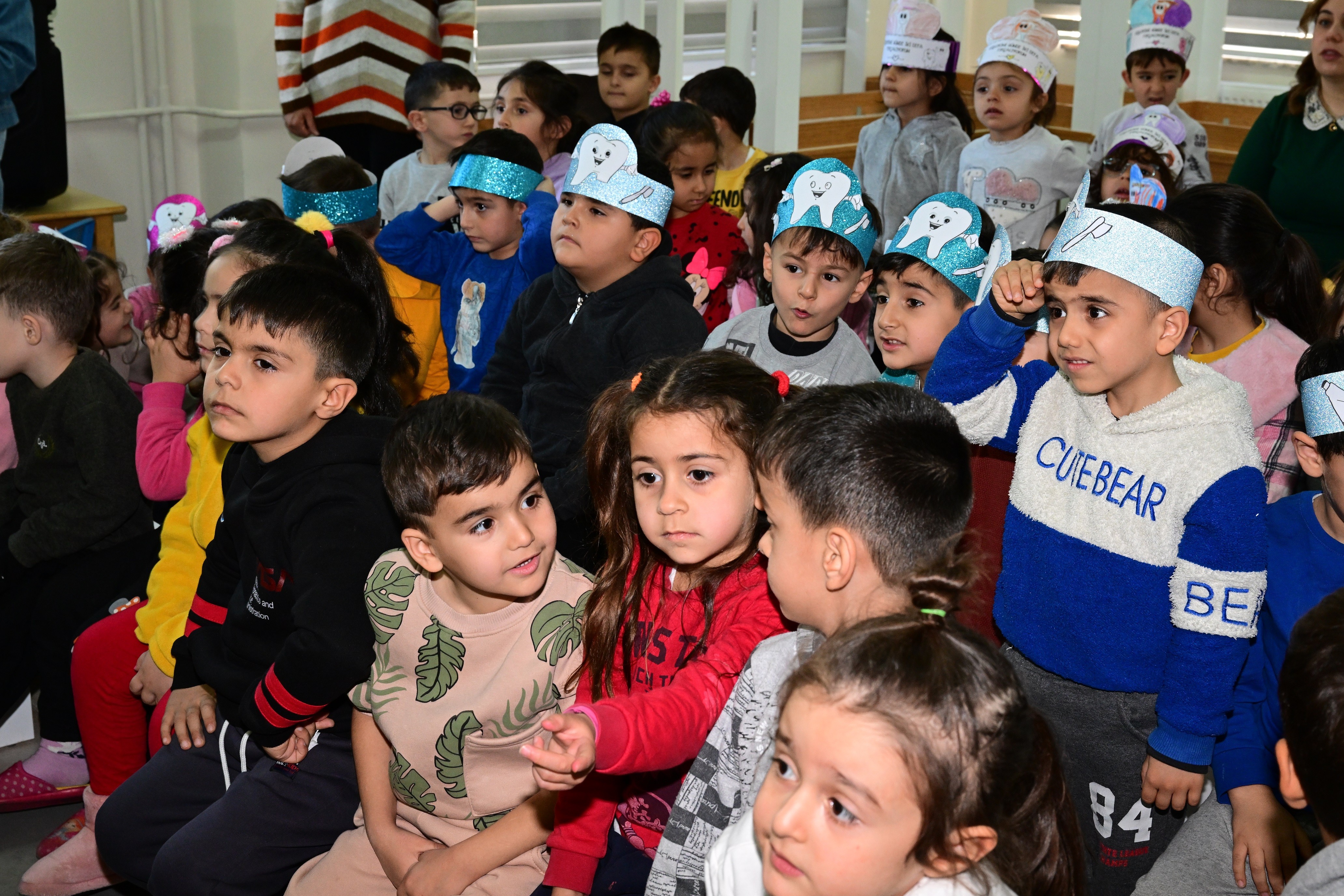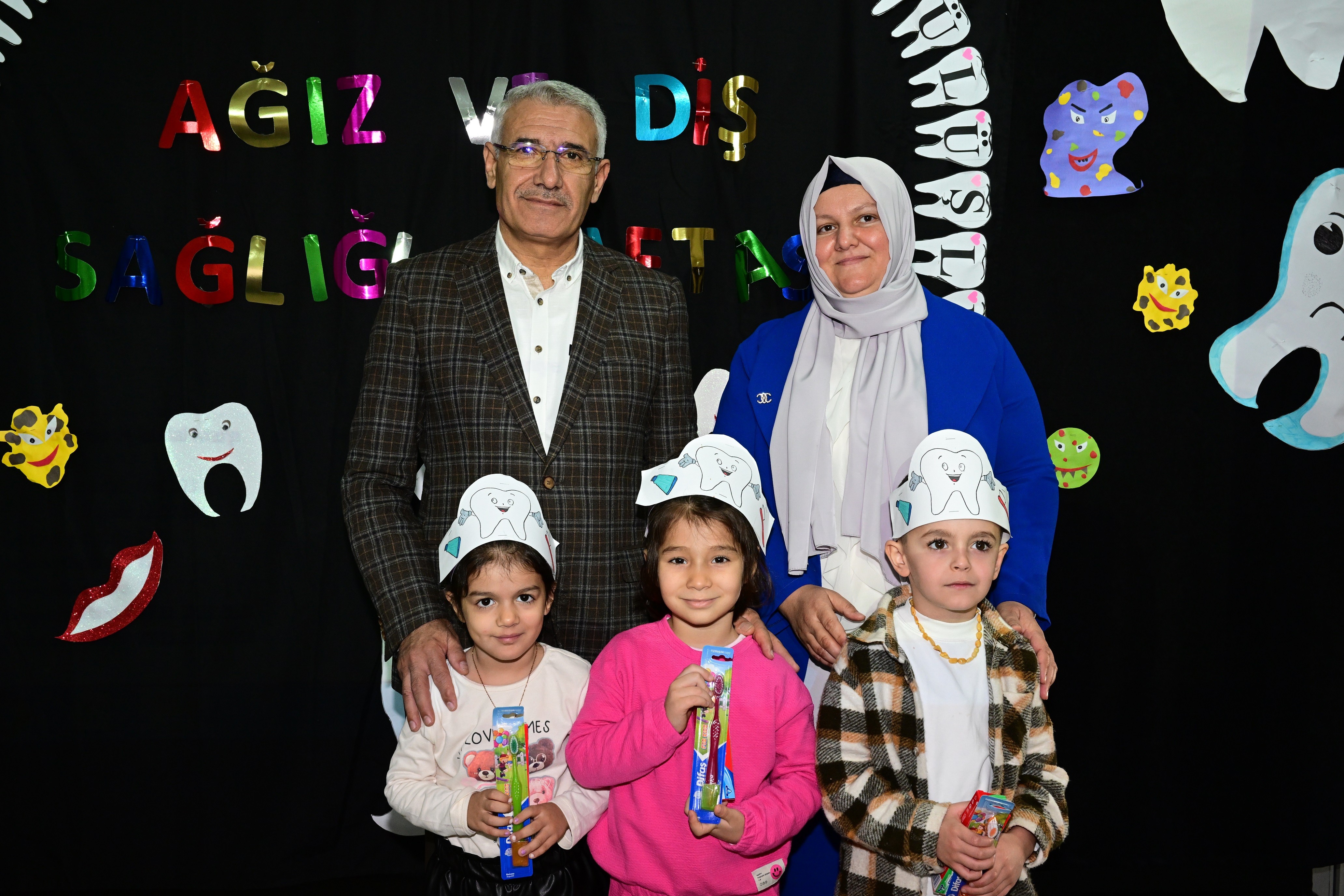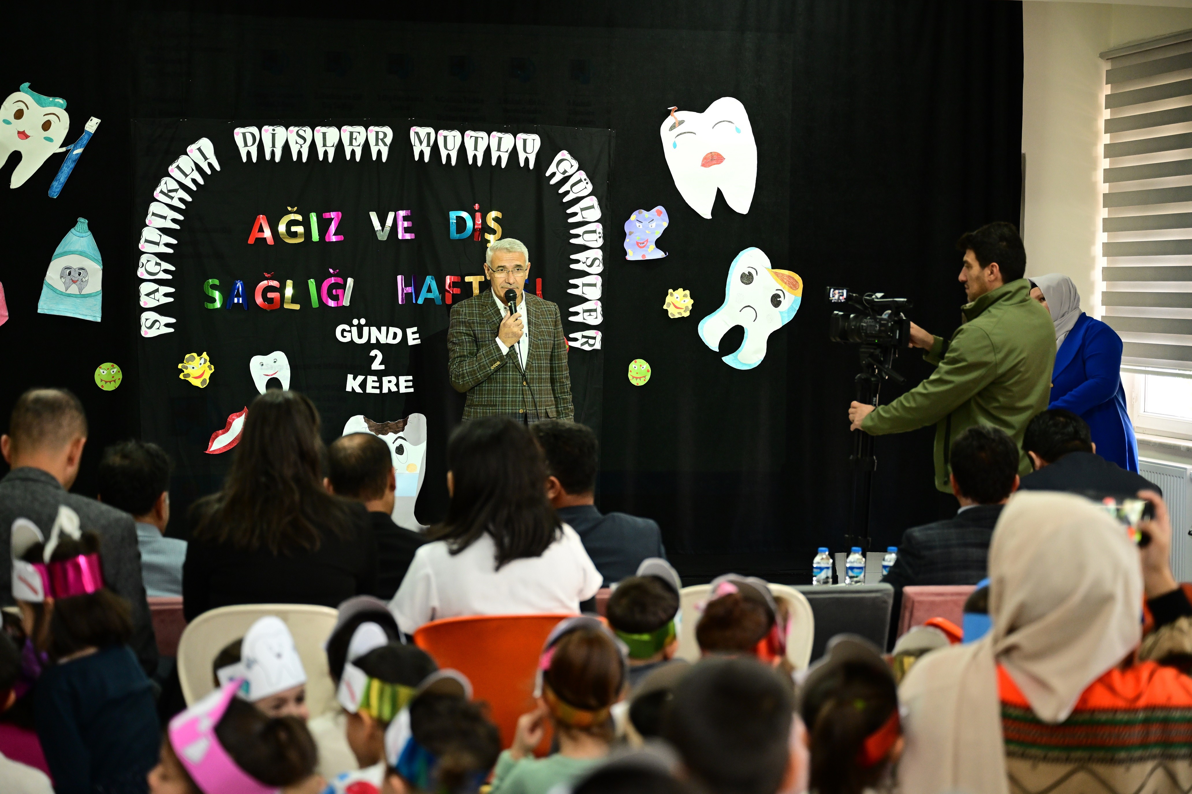 Çocuklara erken yaştan itibaren diş fırçalama alışkanlığı kazandırmak ve diş bakımı farkındalığı oluşturmak amacıyla çeşitli etkinlilerin yapıldığı Ağız ve Diş Sağlığı Haftası kapsamında Kamu Görevlileri Anaokulu’nda minikler tarafından program düzenlendi. Battalgazi Belediye Başkanı Osman Güder düzenlenen etkinliğe katılarak miniklere ağız ve diş bakım seti hediye etti. Ana Okulu öğrencileriyle yakından ilgilenen Başkan Güder, miniklerden dişlerinin düzenli olarak fırçalanması için söz aldı.