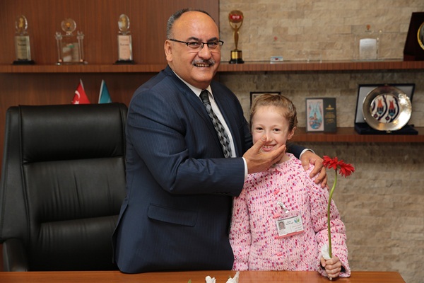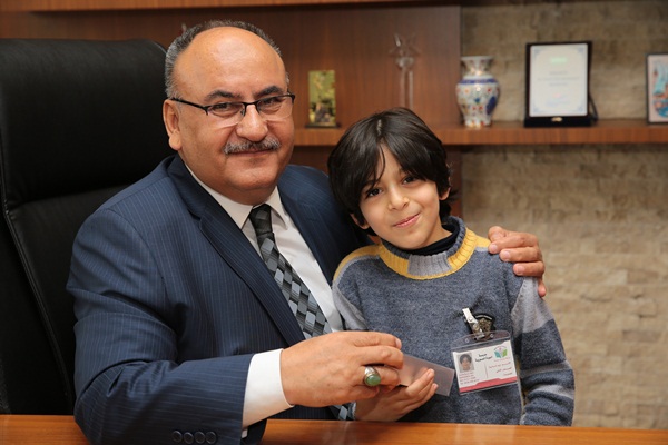 Suriyeli öğrencilerin Ümraniye Belediye Başkanı Hasan Can’a çiçekler takdim ederek teşekkür ettiği ziyarette, Başkan Hasan Can: “Suriyeli kardeşlerimiz için elimizden geleni yapmaya devam edeceğiz, okulları ve ihtiyaçları konusunda desteklerimiz devam edecek” dedi.
