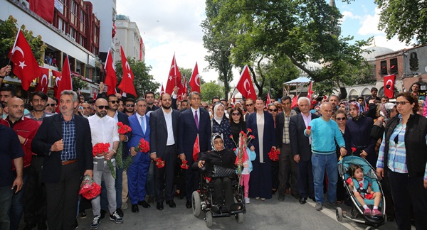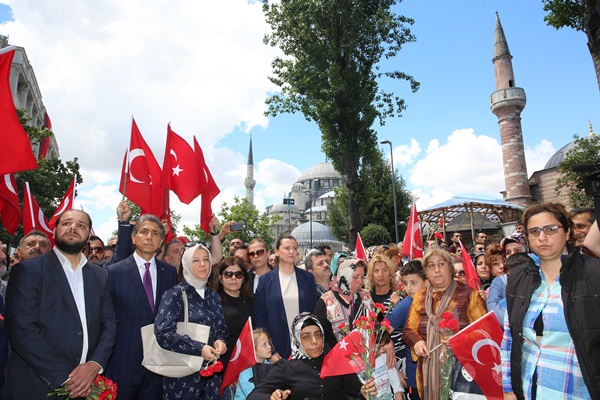 Patlamanın olduğu yere karanfil bıraktıktan sonra açıklamalarda bulunan Fatih Belediye Başkanı Mustafa Demir, ”Bugün burada kadın, çoluk çocuk, yaşlısı, engellisi, toplumun bütün kesiminden insanlarla menfur saldırının yapıldığı yere gelip karanfil bıraktık. Aziz mübarek Ramazan Gününde kucaklaşmanın, kardeşliğin paylaşıldığı böylesi bir günde saldırının olması bizi daha da derinden üzdü. Terörün temel hedefi toplumun bütün kesimlerine korku salmaktır. Bizde bunun karşısına bir bütün olarak, millet olarak değerlerimizin bütünleştiğinin önemli bir göstergesidir. Terörü lanetliyoruz, ümit ediyoruz ki ülkemiz artık bu tür olaylara maruz kalmasın” dedi.