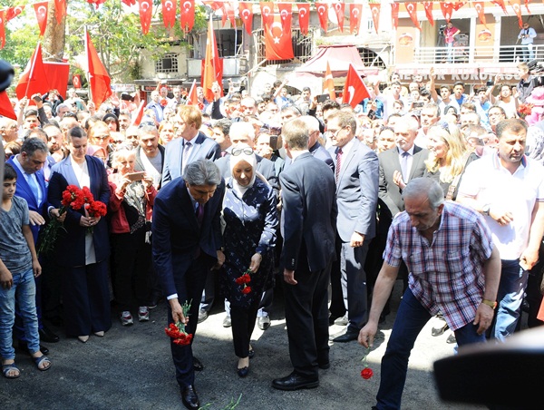Dün sabah saatlerinde Fatih Veznecilerde ki bombalı terör saldırının meydana geldiği yere vatandaşların ziyaretleri devam ediyor. Patlamada hayatını kaybeden 2 şehit polis memurunun Fatih Camisinde kılınan cenaze namazı sonrasında Fatih Belediye Başkanı Mustafa Demir ve Eşi Şule Demir’in yanı sıra beraberinde ki heyet olay yerine kadar yürüyerek, patlamanın olduğu noktaya eşi Şule Demir’le birlikte karanfil bıraktı.