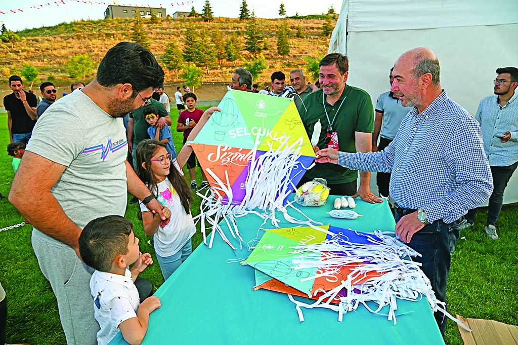 Selçuklu Belediyesi tarafından Seyir Tepesi’nde ikincisi düzenlenen Uçurtma Şenliği çocukların yüzlerini güldürdü. Yoğun katılımla gerçekleşen şenlikte yüzlerce uçurtma gökyüzünü süsledi. Selçuklu Belediyesi’nin düzenlediği ve Konya’da yaz günlerine renk katan Uçurtma Şenliği’nin ikincisi Selçuklu’nun gözde mekânlarından bir tanesi olan Seyir Tepesi’nde düzenlendi. Seyir Tepesi’ne gelen aileler hem açık hava ve doğa ile iç içe olurken hem de eşsiz Konya manzarası eşliğinde pikniklerini yaparak hafta sonu tatilinde streslerini attılar. Selçuklu Belediye Başkanı Ahmet Pekyatırmacı da başta çocuklar olmak üzere ailelerin de gün boyu keyifli vakit geçirdikleri etkinliğe katılarak onların sevincine ortak oldu. Çocuklarla sohbet eden, fotoğraf çekinen Başkan Pekyatırmacı onlarla birlikte uçurtma uçurdu, etkinlik alanına gelen ailelerle sohbet etti. Selçuklu Belediyesi tarafından etkinlik kapsamında çocuklar için özel aktivite alanları oluşturuldu. Gün boyu çeşitli animasyon gösterileri düzenlendi, interaktif ve şişme oyun alanlarında çocuklar gönüllerince eğlendi. Sportif aktivitelerin de yapıldığı etkinlikte çocuklar için yarışmalar düzenlendi, çocuklar sürpriz hediyelerle sevindirildi.