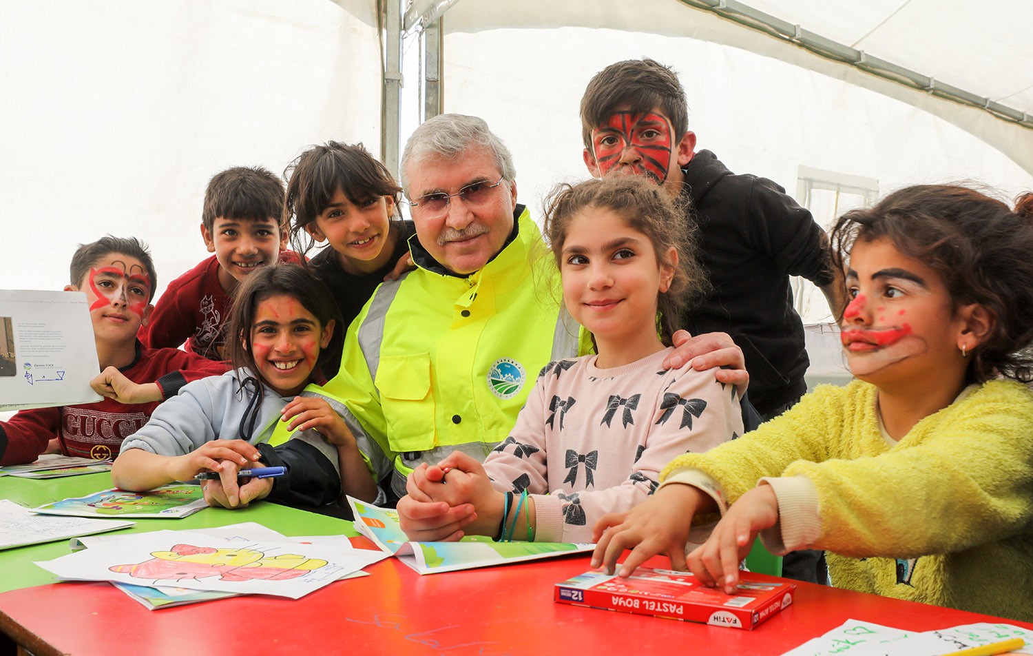Oyun çadırında miniklerle buluşan, çocuklarla birlikte boyama yapan Başkan Ekrem Yüce, “Tebessümleriyle günümüzü, gönlümüzü aydınlatan evlatlarımız için her türlü çalışmayı gerçekleştireceğiz. Evlatlarımızın yüzlerindeki gülümseme, hepimizin yüreğini ısıtıyor. Rabbim her birinin bahtını açık eylesin. Çocuklarımıza en iyi şartları sağlayana kadar çalışmaya devam edeceğiz” diye konuştu.