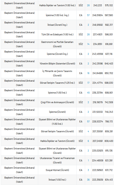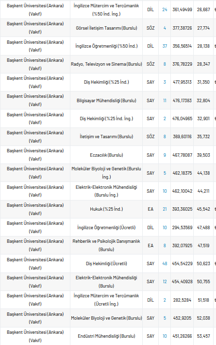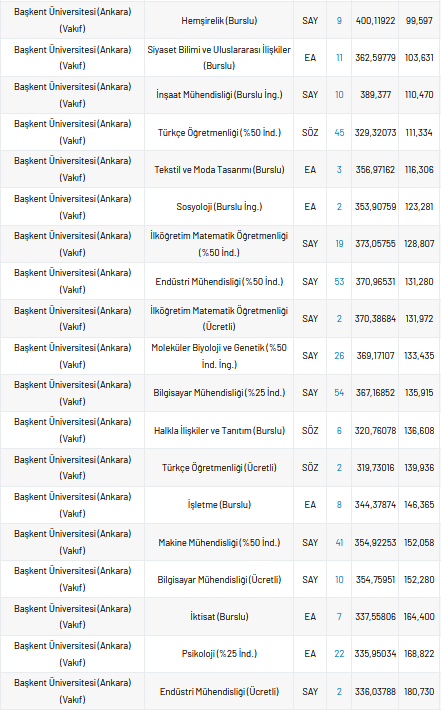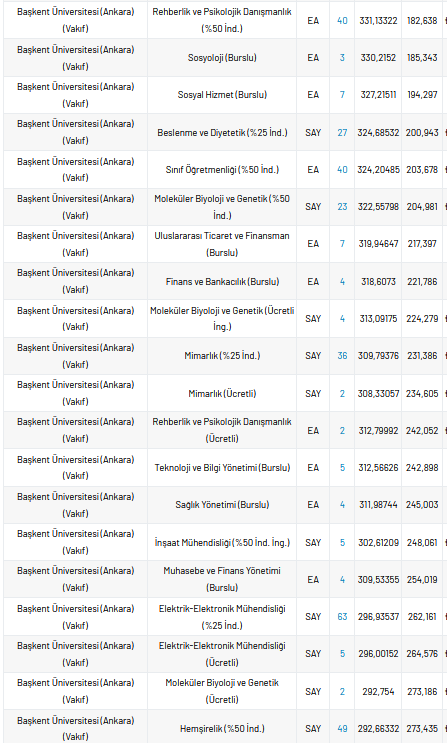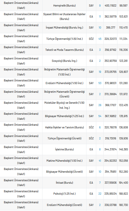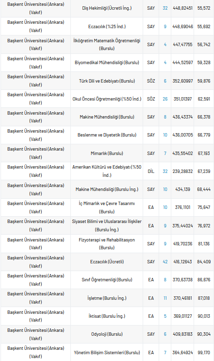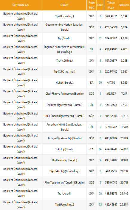 Başkent Üniversitesi 2021 taban puanları, yüzdelik dilimleri ve kontenjan sayıları