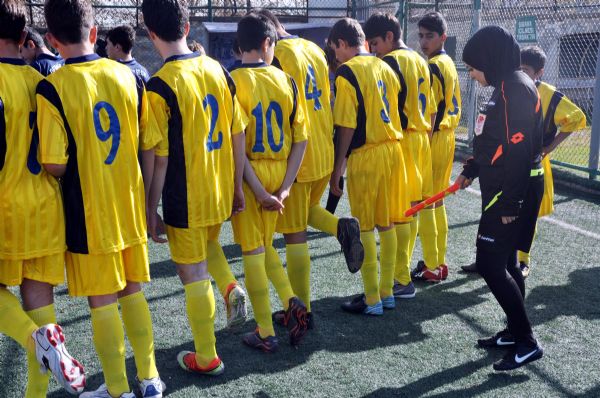 Afyonkarahisar'da hafta sonu U-15 Ligi'nde Demirspor'la Sandıklıspor arasında Atatürk Spor Tesisleri 3 No'lu sahada oynanan maçta, Afyon Kocatepe Üniversitesi İktisadi ve İdari Bilimler Fakültesi Maliye Bölümü 3'üncü sınıf öğrencisi 21 yaşındaki Buhra Yurdakul, başörtüsüyle görev yaptı.