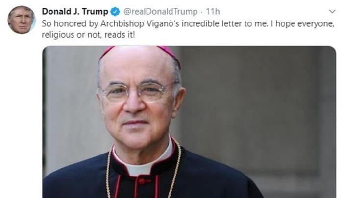 Vigano, Trump'ı uyarmak için yazdığı mektubunda ABD'deki protestoların arkasında "derin devletin" yanı sıra "derin kilise" olduğunu da ileri sürdü. Trump ise Başpiskopos Vigano’nun mektubunu alıntı yaparak "olağanüstü" bir mektup olarak övdü. Mektubu almaktan onur duyduğunu belirten Trump, mektubu herkesin okumasını için sosyal medya hesabı Twitter'dan paylaştı.