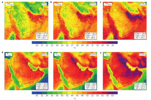 Yapılan sıcaklık tespitleri ve gelecek yıllar için tahmini ölçümlere göre Basra Körfezinde sıcaklık bir önceki yıllara göre 5 derece birden artacak. Yukarıdaki haritadan da adım adım gösterildiği gibi sıcaklık 2045 yılına dek artacak. Sera gazı salınımları da dikkate alındığında yakın bir gelecekte Basra Körfezi diye bir yer kalmayacak gibi.
