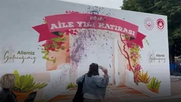 Türkiye’de düşen doğurganlık hızı ile genç nüfus oranı alarm verirken, Batı hayranı feministler, evliliği teşvik eden ‘Aile Yılı’nı protesto etmek amacıyla "Aile Yılı Hatırası" panosuna mor boya fırlattı.