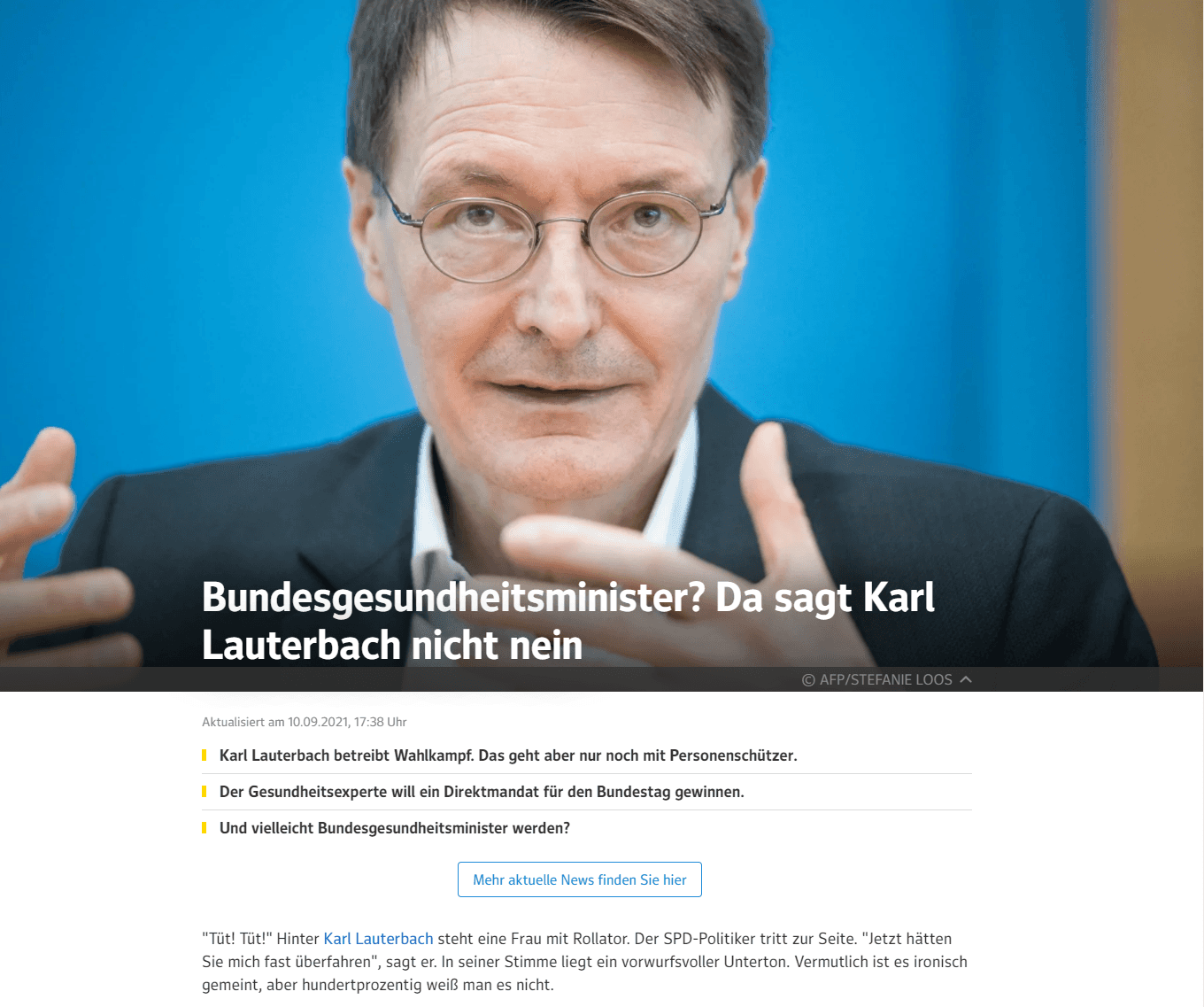 Almanya Sosyal Demokrat Partisi Milletvekili Karl Lauterbach, henüz milletvekilliği için "seçim kampanyası" yürütürken, koruma ile gezdiğini ve kendisini korumasız güvende hissetmediğini söyledi.