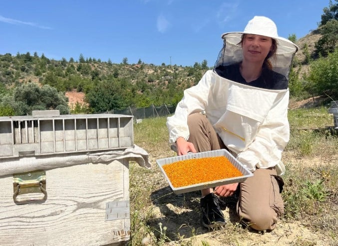 Avrupa'daki üst düzey işinden ayrıldıktan sonra böcek korkusunu yenerek Eskişehir'in dağlarında arıcılık yapmaya başlayan Nilay Boyluoğlu, babasıyla birlikte 200 kovana bakarak, yıllık her kovandan 20 kilograma kadar bal hasat ediyor.