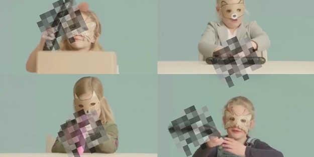 Yüzlerine maske takarak gölgelemeye çalıştıkları kız çocukları, ürünlerin ne olduğunu keşfetmeye çalıştı.