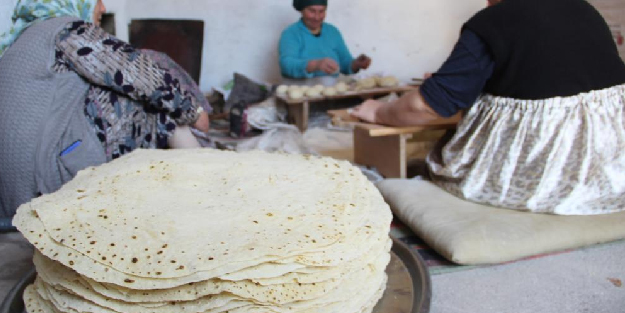 Havaların soğumasıyla birlikte kışlık ekmeklerini yapmaya başlayan köylü kadınlar yardımlaşarak bazen 6 aylık bazen de neredeyse 1 yıllık ekmeklerini bir günde yapıyor.