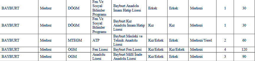 Bayburt liseleri taban puanı 2021 Bayburt liseleri başarı sıralaması |Bayburt liseleri kontenjanları