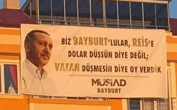 Faiz indirimi sonrası doların anormal artışı nedeniyle türlü algı operasyonlarına kalkışılsa da, Bayburt'ta açılan bir pankart dikkatlerden kaçmadı.