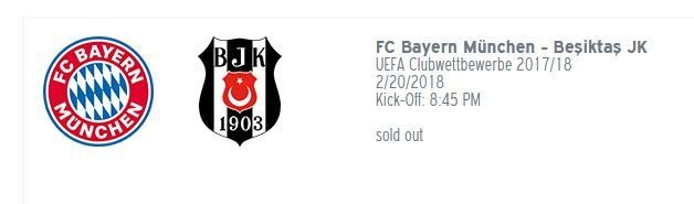 Bayern Münih'in resmi sitesindeki biletler bölümüne girildiğinde Beşiktaş maçı için bilet satımının olmadığı görülüyor.