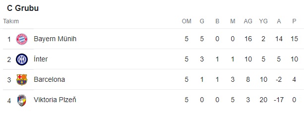 Şampiyonlar Ligi C Grubu altıncı hafta kaçında Bayern Münih ile Inter karşılaşacak. Devler Ligi'nin en zorlu grubunda Barcelona, Şampiyonlar Ligi'nden elendi. Bu sebeple grubu ilk iki sırada tamamlamayı garantileyen Bayern Münih ile Inter arasındaki maçın ne zaman oynanacağı araştırılıyor.
