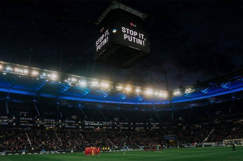 Eintracht Frankfurt - Bayern Münih maçının başlamasından önce Frankfurt Stadı'nda bir dakikalık saygı duruşu yapıldı ve "Stop ıt, Putin" (Dur Putin) yazısı ekranlara yansıtıldı.