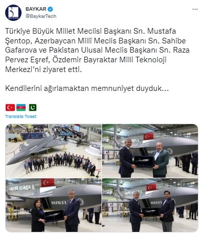 Türkiye, Azerbaycan ve Pakistan "Üçlü Meclis Başkanları İkinci Toplantısı" için İstanbul’da bir araya gelen Türkiye Büyük Millet Meclisi Başkanı Sayın Mustafa ŞENTOP, Azerbaycan Millî Meclis Başkanı Sayın Sahibe GAFAROVA ve Pakistan Ulusal Meclis Başkanı Sayın Raza Pervez EŞREF ile beraberlerindeki heyet, Özdemir Bayraktar Milli Teknoloji Merkezi’ni ziyaret etti.