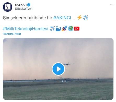 Baykar firması sosyal medya hesabından AKINCI TİHA'nın uçuşu esnasında arkadan şimşeklerin çaktığı görüntülerin yer aldığı bir paylaşımda bulundu. Yapılan paylaşımda, "Şimşeklerin takibinde bir AKINCI" ifadelerine yer verildi.