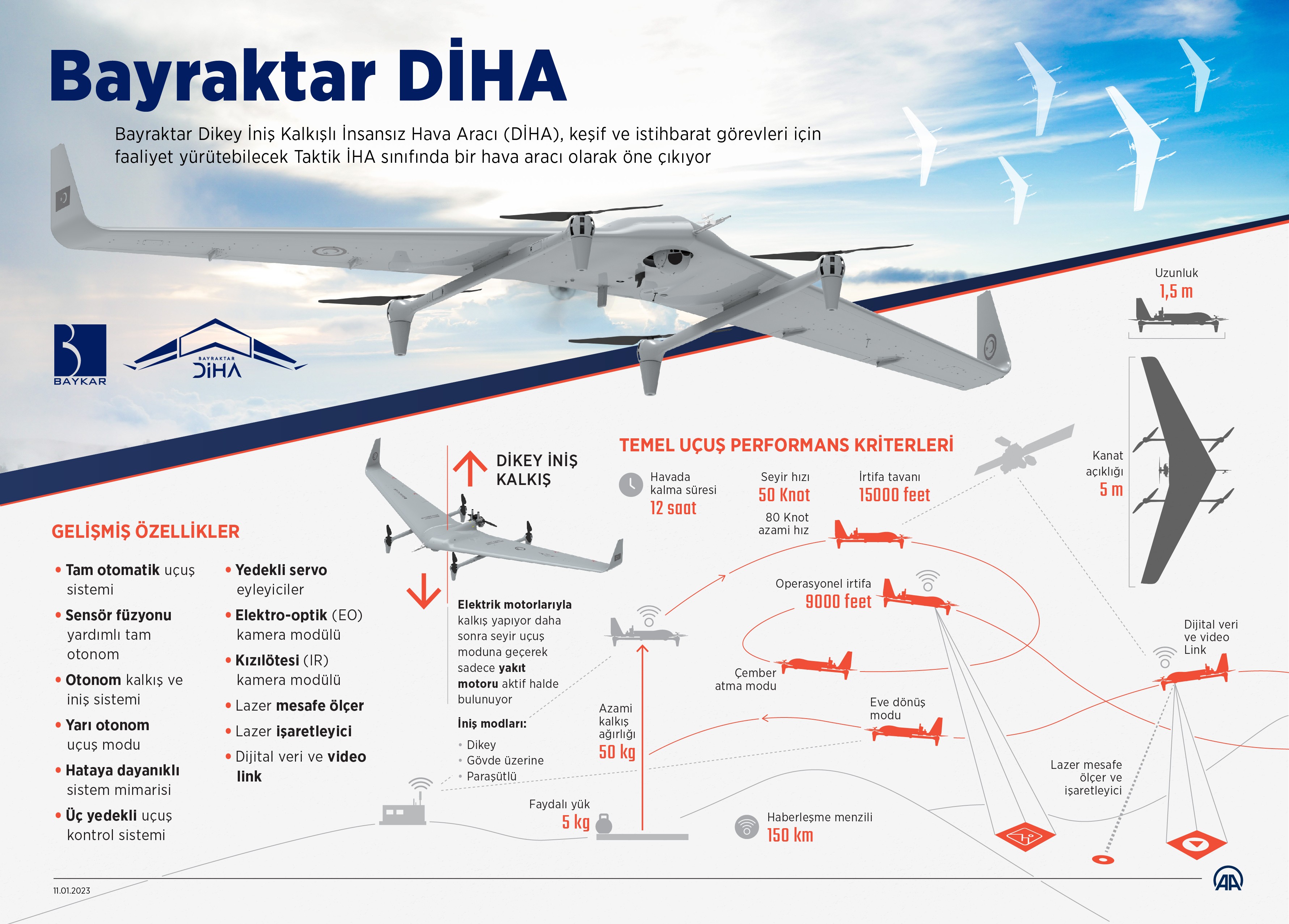 Baykar firması, "Bayraktar Dikey İniş Kalkışlı İnsansız Hava Aracı"nın (DİHA) 8 bin feet operasyonel irtifa uçuş testini başarıyla tamamladığını duyurdu.