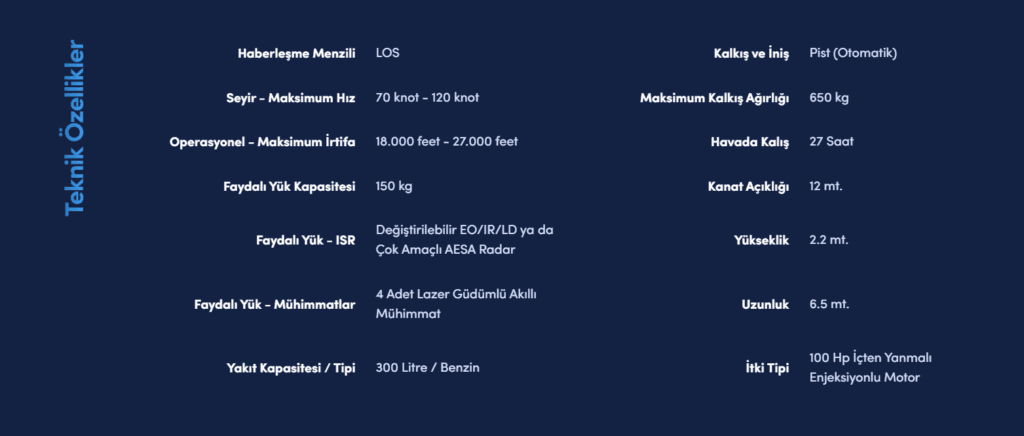 Haluk Bayraktar tarafından yapılan sunumda Bayraktar TB2 SİHA sisteminin teknik özelliklerinde güncellenen veriler olduğu dikkat çekti. Paylaşılan özelliklerin Baykar Savunma’nın geliştirdiği ve birçok ülkenin güvenlik güçlerinde hizmet vermekte olan Bayraktar TB2 S/İHA ile SATCOM (Uydu Haberleşmesi) kabiliyetli versiyonu Bayraktar TB2S SİHA sistemlerine ait olduğu görülüyor.