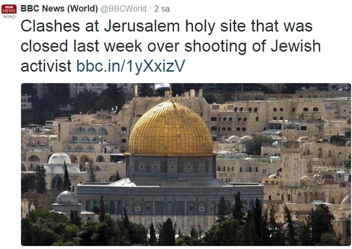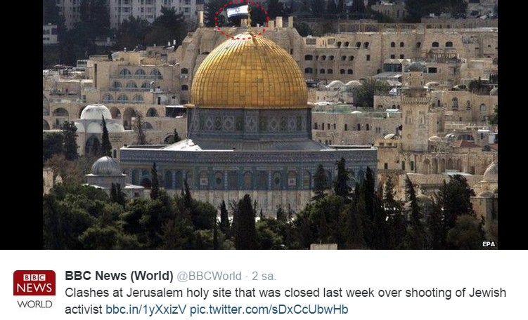 BBC News World, İsrailli aşırı dinci yahudilerin Mescid-i Aksa’da çıkardığı olayları duyurduğu haberinde, Mescid-i Aksa’nın karşısında bulunan Kubbet-üs-Sahra camisinin fotoğrafını kullandı. İngiltere'de yayın yapan Yahudi kuruluş BBC, Kubbet-üs-Sahra'nın kubbesine ise işgal devleti İsrail paçavrasını koydu.