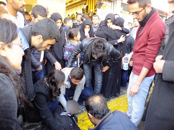 HÜDA PAR’ın düzenlediği mitingden sonra 14.00 sıralarında evlerine dönen 6 başörtülü Bayan Cumhuriyet Caddesi Sanat Sokağı yakınında bulunan BDP seçim bürosunun önünde saldırıya uğradı.