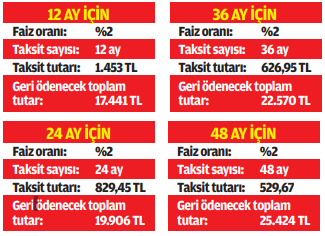 Ortalama yüzde 2 faiz oranı ile alınan kredinin maliyeti cep yakıyor.